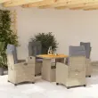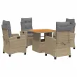 vidaXL Vrtna jedilna garnitura 5-delna z blazinami bež poli ratan