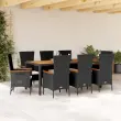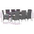 Ta vrtna jedilna garnitura je odlična izbira za večerjo na prostem ali za sprostitev na vrtu, dvorišču ali terasi. Vzdržljiv material: PE ratan, znan tudi kot poli ratan, je močan sintetični material, ki zahteva malo vzdrževanja in je videti kot naravni ratan. Je lahek, enostaven za čiščenje in se zaradi svoje vzdržljivosti in odpornosti na vremenske vplive pogosto uporablja za zunanje pohištvo.Nastavljivo naslonjalo: Ta vrtni sedež ima ročaj. S potegom ročaja lahko naslonjalo nastavite v poljuben položaj in ga hitro vrnete v prvotni položaj.Udobno sedenje: To zunanje pohištvo z debelo oblazinjenimi blazinami zagotavlja udobno sedenje.Prevleko je mogoče odstraniti in oprati: Te sedežne blazine imajo odstranljive prevleke za lažje pranje in vzdrževanje.Stabilna mizna plošča, ki je enostavna za čiščenje: Ta vrtna miza ima ploščo iz akacijevega lesa, ki je čvrsta, vzdržljiva in jo je enostavno čistiti z vlažno krpo. Dobro je vedeti:Če želite, da vaše zunanje pohištvo ostane lepo, vam priporočamo, da ga zaščitite z vodoodporno prevleko.Maksimalna nosilnost (na sedež): 110 kgUV-odpornoPotrebno sestavljanje: DaVrtna miza:Barva: Črna in rjavaMaterial: PE ratan, prašno premazano jeklo, trden akacijev les z oljnim premazomDimenzije: 190 x 90 x 75 cm (D x Š x V)Vrtni stol:Barva: ČrnaMaterial: PE ratan, prašno premazano jeklo, trden akacijev les z oljnim premazomDimenzije: 60 x 58 x 108 cm (Š x G x V)Velikost sedeža: 47 x 45 cm (Š x G)Višina sedeža od tal: 44 cmVišina naslonjala za roke, merjena od tal: 66 cmVrtni naslanjač:Barva: ČrnaMaterial: PE ratan, prašno premazano jeklo, trden akacijev les z oljnim premazomDimenzije sedišča: 58 x 62 x 108 cm (Š x G x V)Dimenzije v ležečem položaju: 58 x 90 x 91 cm (Š x G x V)Velikost sedeža: 47 x 47 cm (Š x G)Višina sedišča, merjena od tal: 43 cmVišina naslona za roke, merjena od tal: 67 cmBlazina:Barva: Kremno belaMaterial prevleke: Tkanina (100 % poliester)Polnilo sedežne blazine: PenaDimenzije sedežne blazine: 47 x 45 x 4 cm (Š x G x D) Paket vsebuje:1 x Vrtna miza6 x Vrtni stol2 x Vrtni naslanjač8 x Sedežna blazina s snemljivo in pralno prevleko 3277519