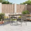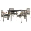 Ta vrtna jedilna garnitura je odlična izbira za večerjo na prostem ali za sprostitev na vrtu, dvorišču ali terasi. Vzdržljiv material: PE ratan, znan tudi kot poli ratan, je močan sintetični material, ki zahteva malo vzdrževanja in je videti kot naravni ratan. Je lahek, enostaven za čiščenje in se zaradi svoje vzdržljivosti in odpornosti na vremenske vplive pogosto uporablja za zunanje pohištvo.Udobno sedenje: To zunanje pohištvo z debelo oblazinjenimi blazinami zagotavlja udobno sedenje.Prevleko je mogoče odstraniti in oprati: Te sedežne blazine imajo odstranljive prevleke za lažje pranje in vzdrževanje.Steklena mizna plošča: Površina zunanje mize je izdelana iz močnega in trpežnega kaljenega stekla, kar omogoča enostavno čiščenje z vlažno krpo in vašemu zunanjemu prostoru doda pridih elegance.Robusten in stabilen okvir: Prašno barvan jekleni okvir zagotavlja, da je vrtno pohištvo močno in stabilno za vsakodnevno uporabo na prostem. Dobro je vedeti:Če želite, da vaše zunanje pohištvo ostane lepo, vam priporočamo, da ga zaščitite z vodoodporno prevleko.Maksimalna nosilnost (na sedež): 110 kgUV-odpornoPotrebno sestavljanje: DaMiza:Barva: ČrnaMaterial: Jeklo s prašnim premazom, kaljeno stekloDimenzije: 140 x 70 x 74 cm (D x Š x V)Stol:Barva: SivaMaterial: PE ratan, prašno premazano jeklo, trden akacijev les z oljnim premazomDimenzije: 54 x 57 x 85 cm (Š x G x V)Velikost sedeža: 46,5 x 49 cm (Š x G)Višina sedeža, merjena od tal: 42,5 cmVišina naslonjala za roke, merjena od tal: 59,5 cmBlazina:Barva: Temno sivaMaterial prevleke: Tkanina (100 % poliester)Material polnila: PenaDimenzije blazine za stol: 46 x 48 x 3 cm (Š x G x D)Paket vsebuje:1 x Vrtna miza4 x Vrtni stol4 x Sedežna blazina s snemljivo in pralno prevleko 3213612