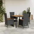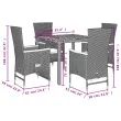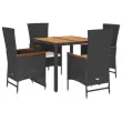 Ta vrtna jedilna garnitura je odlična izbira za večerjo na prostem ali za sprostitev na vrtu, dvorišču ali terasi. Vzdržljiv material: PE ratan, znan tudi kot poli ratan, je močan sintetični material, ki zahteva malo vzdrževanja in je videti kot naravni ratan. Je lahek, enostaven za čiščenje in se zaradi svoje vzdržljivosti in odpornosti na vremenske vplive pogosto uporablja za zunanje pohištvo.Nastavljivo naslonjalo: Ta vrtni sedež ima ročaj. S potegom ročaja lahko naslonjalo nastavite v poljuben položaj in ga hitro vrnete v prvotni položaj.Udobno sedenje: To zunanje pohištvo z debelo oblazinjenimi blazinami zagotavlja udobno sedenje.Prevleko je mogoče odstraniti in oprati: Te sedežne blazine imajo odstranljive prevleke za lažje pranje in vzdrževanje.Stabilna mizna plošča, ki je enostavna za čiščenje: Ta vrtna miza ima ploščo iz akacijevega lesa, ki je čvrsta, vzdržljiva in jo je enostavno čistiti z vlažno krpo. Dobro je vedeti:Če želite, da vaše zunanje pohištvo ostane lepo, vam priporočamo, da ga zaščitite z vodoodporno prevleko.Maksimalna nosilnost (na sedež): 110 kgUV-odpornoPotrebno sestavljanje: DaVrtna miza:Barva: Črna in rjavaMaterial: PE ratan, prašno premazano jeklo, trden akacijev les z oljnim premazomDimenzije: 90 x 90 x 75 cm (D x Š x V)Vrtni stol z naslonom za hrbet:Barva: ČrnaMaterial: PE ratan, prašno premazano jeklo, trden akacijev les z oljnim premazomDimenzije sedišča: 58 x 62 x 108 cm (Š x G x V)Dimenzije v ležečem položaju: 58 x 90 x 91 cm (Š x G x V)Velikost sedeža: 47 x 47 cm (Š x G)Višina sedišča, merjena od tal: 43 cmVišina naslona za roke, merjena od tal: 67 cmVrtni stol z naslonom za hrbet in noge:Barva: ČrnaMaterial: PE ratan, prašno premazano jeklo, trden akacijev les z oljnim premazomDimenzije sedišča: 58 x 62 x 108 cm (Š x G x V)Dimenzije v ležečem položaju: 58 x 126 x 91 cm (Š x G x V)Velikost sedeža: 47 x 47 cm (Š x G)Višina sedišča, merjena od tal: 43 cmVišina naslona za roke, merjena od tal: 67 cmBlazina:Barva: Kremno belaMaterial prevleke: Tkanina (100 % poliester)Polnilo sedežne blazine: PenaDimenzije sedežne blazine: 47 x 45 x 4 cm (Š x G x D) Paket vsebuje:1 x Vrtna miza2 x Vrtni stol z naslonom za hrbet2 x Vrtni stol z naslonom za hrbet in noge4 x Sedežna blazina s snemljivo in pralno prevleko 3277507