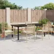 Ta vrtna jedilna garnitura je odlična izbira za večerjo na prostem ali za sprostitev na vrtu, dvorišču ali terasi. Vzdržljiv material: PE ratan, znan tudi kot poli ratan, je močan sintetični material, ki zahteva malo vzdrževanja in je videti kot naravni ratan. Je lahek, enostaven za čiščenje in se zaradi svoje vzdržljivosti in odpornosti na vremenske vplive pogosto uporablja za zunanje pohištvo.Udobno sedenje: To zunanje pohištvo z debelo oblazinjenimi blazinami zagotavlja udobno sedenje.Prevleko je mogoče odstraniti in oprati: Te sedežne blazine imajo odstranljive prevleke za lažje pranje in vzdrževanje.Steklena mizna plošča: Površina zunanje mize je izdelana iz močnega in trpežnega kaljenega stekla, kar omogoča enostavno čiščenje z vlažno krpo in vašemu zunanjemu prostoru doda pridih elegance.Robusten in stabilen okvir: Prašno barvan jekleni okvir zagotavlja, da je vrtno pohištvo močno in stabilno za vsakodnevno uporabo na prostem. Dobro je vedeti:Če želite, da vaše zunanje pohištvo ostane lepo, vam priporočamo, da ga zaščitite z vodoodporno prevleko.Maksimalna nosilnost (na sedež): 110 kgUV-odpornoPotrebno sestavljanje: DaMiza:Barva: ČrnaMaterial: Jeklo s prašnim premazom, kaljeno stekloDimenzije: 200 x 100 x 74 cm (D x Š x V)Stol:Barva: BežMaterial: PE ratan, prašno premazano jeklo, trden akacijev les z oljnim premazomDimenzije: 54 x 57 x 85 cm (Š x G x V)Velikost sedeža: 46,5 x 49 cm (Š x G)Višina sedeža, merjena od tal: 42,5 cmVišina naslonjala za roke, merjena od tal: 59,5 cmBlazina:Barva: Kremno belaMaterial prevleke: Tkanina (100 % poliester)Material polnila: PenaDimenzije blazine klopi: 100 x 48 x 3 cm (Š x G x D)Dimenzije blazine za stol: 46 x 48 x 3 cm (Š x G x D)Paket vsebuje:1 x Vrtna miza6 x Vrtni stol6 x Blazina za stol s snemljivo in pralno prevleko 3213636