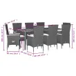 Ta vrtna jedilna garnitura je odlična izbira za večerjo na prostem ali za sprostitev na vrtu, dvorišču ali terasi. Vzdržljiv material: PE ratan, znan tudi kot poli ratan, je močan sintetični material, ki zahteva malo vzdrževanja in je videti kot naravni ratan. Je lahek, enostaven za čiščenje in se zaradi svoje vzdržljivosti in odpornosti na vremenske vplive pogosto uporablja za zunanje pohištvo.Nastavljivo naslonjalo: Ta vrtni sedež ima ročaj. S potegom ročaja lahko naslonjalo nastavite v poljuben položaj in ga hitro vrnete v prvotni položaj.Udobno sedenje: To zunanje pohištvo z debelo oblazinjenimi blazinami zagotavlja udobno sedenje.Prevleko je mogoče odstraniti in oprati: Te sedežne blazine imajo odstranljive prevleke za lažje pranje in vzdrževanje.Stabilna mizna plošča, ki je enostavna za čiščenje: Ta vrtna miza ima ploščo iz akacijevega lesa, ki je čvrsta, vzdržljiva in jo je enostavno čistiti z vlažno krpo. Dobro je vedeti:Če želite, da vaše zunanje pohištvo ostane lepo, vam priporočamo, da ga zaščitite z vodoodporno prevleko.Maksimalna nosilnost (na sedež): 110 kgUV-odpornoPotrebno sestavljanje: DaVrtna miza:Barva: Črna in rjavaMaterial: PE ratan, prašno premazano jeklo, trden akacijev les z oljnim premazomDimenzije: 150 x 90 x 75 cm (D x Š x V)Vrtni naslanjač:Barva: ČrnaMaterial: PE ratan, prašno premazano jeklo, trden akacijev les z oljnim premazomDimenzije sedišča: 58 x 62 x 108 cm (Š x G x V)Dimenzije v ležečem položaju: 58 x 90 x 91 cm (Š x G x V)Velikost sedeža: 47 x 47 cm (Š x G)Višina sedišča, merjena od tal: 43 cmVišina naslona za roke, merjena od tal: 67 cmBlazina:Barva: Kremno belaMaterial prevleke: Tkanina (100 % poliester)Polnilo sedežne blazine: PenaDimenzije sedežne blazine: 47 x 45 x 4 cm (Š x G x D) Paket vsebuje:1 x Vrtna miza6 x Vrtni naslanjač6 x Sedežna blazina s snemljivo pralno prevleko 3277509