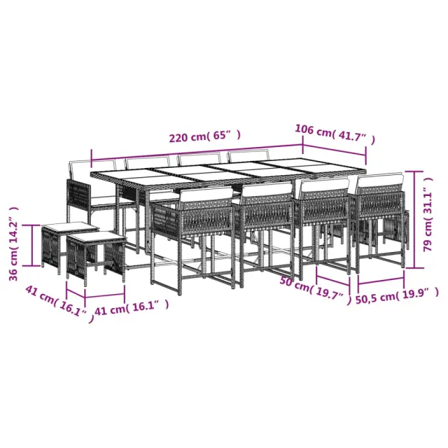 vidaXL Vrtna jedilna garnitura 13-delna z blazinami sv. siv poli ratan