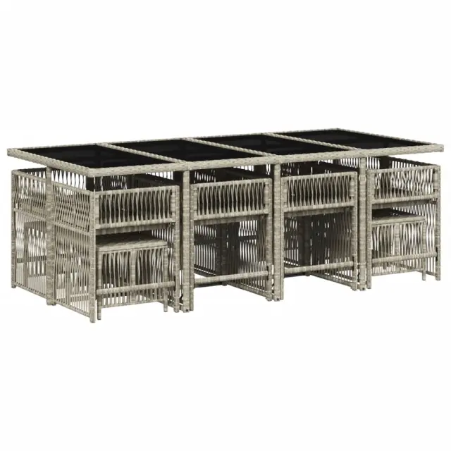 vidaXL Vrtna jedilna garnitura 13-delna z blazinami sv. siv poli ratan
