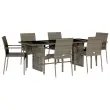 Ta vrtna jedilna garnitura je odlična izbira za večerjo na prostem ali za sprostitev na vrtu, dvorišču ali terasi. Vzdržljiv material: PE ratan, znan tudi kot poli ratan, je močan sintetični material, ki zahteva malo vzdrževanja in je videti kot naravni ratan. Je lahek, enostaven za čiščenje in se zaradi svoje vzdržljivosti in odpornosti na vremenske vplive pogosto uporablja za zunanje pohištvo. Steklena mizna plošča: Površina zunanje mize je izdelana iz močnega in trpežnega kaljenega stekla, kar omogoča enostavno čiščenje z vlažno krpo in vašemu zunanjemu prostoru doda pridih elegance. Udobno sedenje: To zunanje pohištvo z debelo oblazinjenimi blazinami zagotavlja udobno sedenje. Prevleko je mogoče odstraniti in oprati: Te sedežne blazine imajo odstranljive prevleke za lažje pranje in vzdrževanje. Robusten in stabilen okvir: Prašno barvan jekleni okvir zagotavlja, da je vrtno pohištvo močno in stabilno za vsakodnevno uporabo na prostem. Dobro je vedeti:Če želite, da vaše zunanje pohištvo ostane lepo, vam priporočamo, da ga zaščitite z vodoodporno prevleko.Maksimalna nosilnost (na sedež): 110 kgUV-odpornoPotrebno sestavljanje: DaVrtna miza:Barva: SivaMaterial: PE ratan, jeklo s prašnim premazom, kaljeno stekloDimenzije: 190 x 80 x 74 cm (D x Š x V)Vrtni stol:Barva: SivaMaterial: PE ratan, jeklen okvir s prašnim premazomDimenzije: 59 x 53,5 x 88 cm (Š x G x V)Velikost sedeža: 40 x 43 cm (Š x G)Višina sedeža od tal: 44 cmVišina naslonjal za roke, merjena od tal: 64,5 cmBlazina:Barva: Temno sivaMaterial prevleke: Tkanina (100 % poliester)Polnilo sedežne blazine: PenaMere sedežne blazine: 40 x 43 x 3 cm (Š x G x D)Paket vsebuje:1 x Vrtna miza6 x Vrtni stol6 x Blazina za sedež 3213496