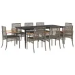 vidaXL Vrtna jedilna garnitura 9-delna z blazinami siv poli ratan