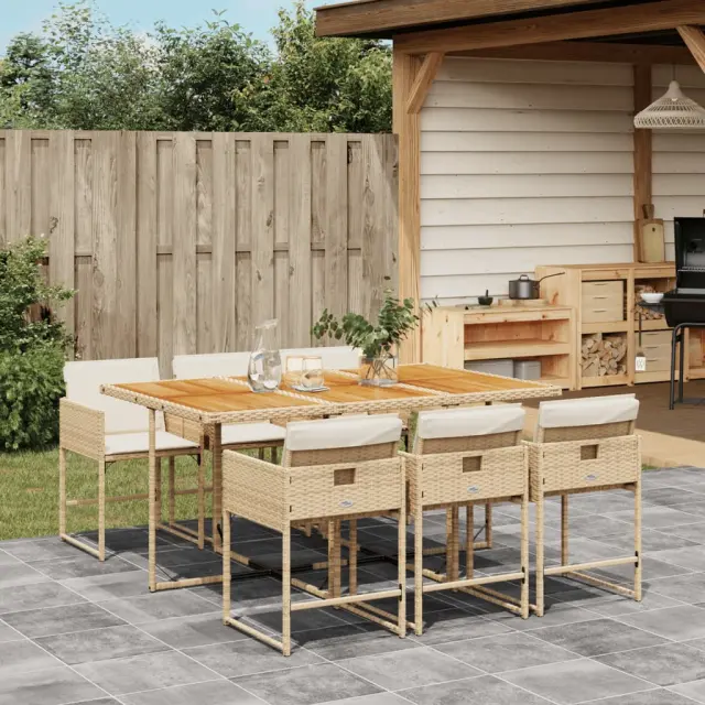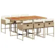 vidaXL Vrtna jedilna garnitura 7-delna z blazinami bež poli ratan