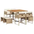 vidaXL Vrtna jedilna garnitura 9-delna z blazinami bež poli ratan