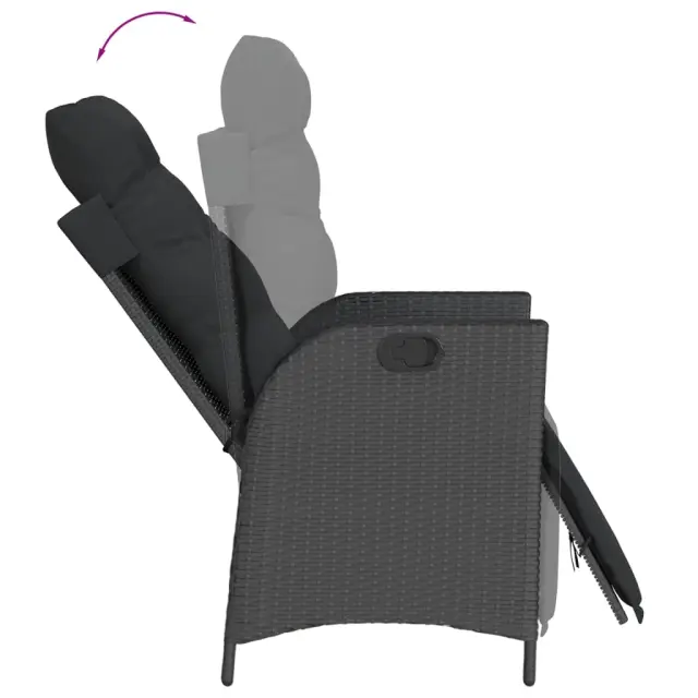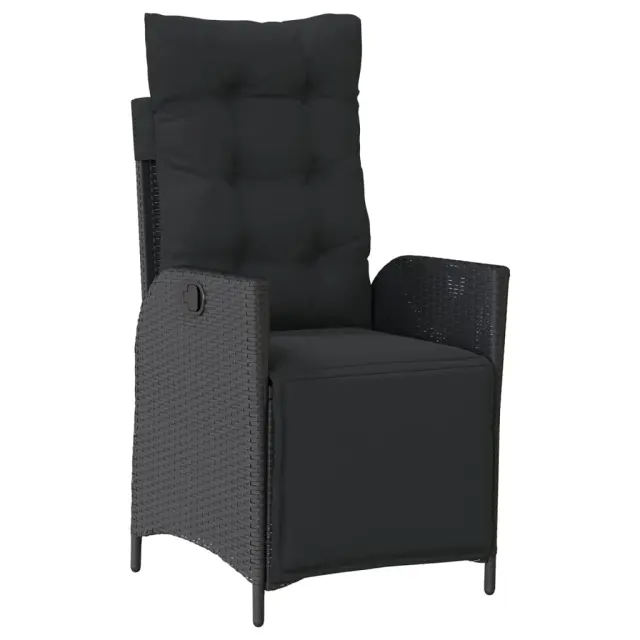 Ta vrtna jedilna garnitura je odlična izbira za večerjo na prostem ali za sprostitev na vrtu, dvorišču ali terasi. Vzdržljiv material: PE ratan, znan tudi kot poli ratan, je močan sintetični material, ki zahteva malo vzdrževanja in je videti kot naravni ratan. Je lahek, enostaven za čiščenje in se zaradi svoje vzdržljivosti in odpornosti na vremenske vplive pogosto uporablja za zunanje pohištvo.Nastavljivo naslonjalo za hrbet in podnožje: Ta vrtni sedež ima ročaj. Naslonjalo za hrbet in naslonjalo za noge lahko s potegom ročaja nastavite v poljuben položaj in ju hitro vrnete v prvotni položaj.Udobno sedenje: To zunanje pohištvo z debelo oblazinjenimi blazinami zagotavlja udobno sedenje.Prevleko je mogoče odstraniti in oprati: Te sedežne blazine imajo odstranljive prevleke za lažje pranje in vzdrževanje. Hrbtne blazine imajo na zadnji strani zavihek za enostavno pritrditev na naslonjala.Stabilna mizna plošča, ki je enostavna za čiščenje: Ta vrtna miza ima ploščo iz akacijevega lesa, ki je čvrsta, vzdržljiva in jo je enostavno čistiti z vlažno krpo. Dobro je vedeti:Če želite, da vaše zunanje pohištvo ostane lepo, vam priporočamo, da ga zaščitite z vodoodporno prevleko.Maksimalna nosilnost (na sedež): 110 kgUV-odpornoPotrebno sestavljanje: DaMiza:Barva: ČrnaMaterial: PE ratan, prašno premazano jeklo, trden akacijev les z oljnim premazomDimenzije: 190 x 90 x 75 cm (D x Š x V)Vrtni naslanjač:Barva: ČrnaMaterial: PE ratan, jeklen okvir s prašnim premazomDimenzije v sedečem položaju: 57 x 61 x 93 cm (Š x G x V)Dimenzije v ležečem položaju: 57 x 115 x 83 cm (Š x G x V)Velikost sedeža: 47 x 50 cm (Š x G)Višina sedeža od tal: 44 cmVišina naslonjala za roke, merjena od tal: 64 cmBlazina:Barva: ČrnaMaterial prevleke: Tkanina (100 % poliester)Polnilo sedežne blazine: PenaPolnilo hrbtne blazine: bombažna vlaknaDimenzije sedežne blazine: 48 x 89 x 3 cm (Š x G x D)Dimenzije hrbtne blazine: 66 x 48 x 11 cm (D x Š x D)Paket vsebuje:1 x Vrtna miza6 x Vrtni stol s funkcijo nagiba6 x Blazina za hrbet6 x Sedežna blazina s snemljivo pralno prevleko 3213342