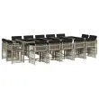 vidaXL Vrtna jedilna garnitura 17-delna z blazinami siv poli ratan