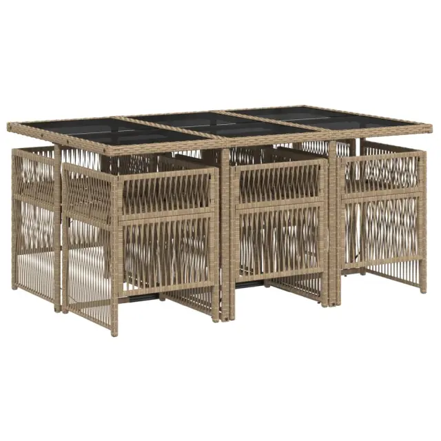 vidaXL Vrtna jedilna garnitura 7-delna z blazinami bež poli ratan