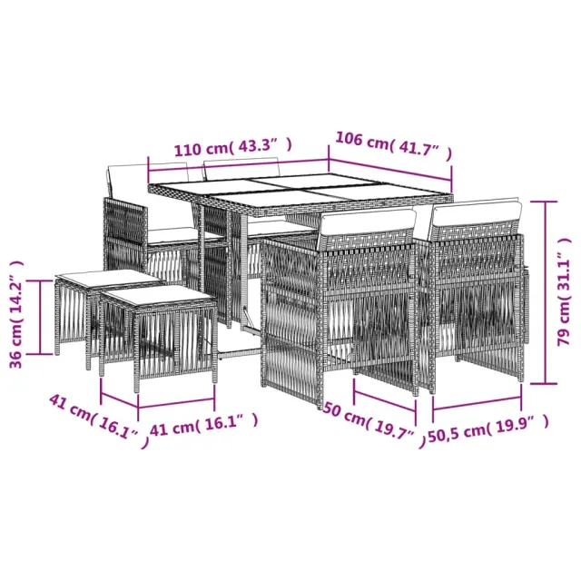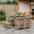vidaXL Vrtna jedilna garnitura 9-delna z blazinami bež poli ratan