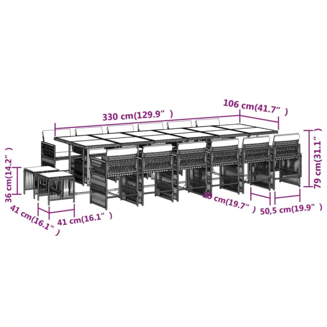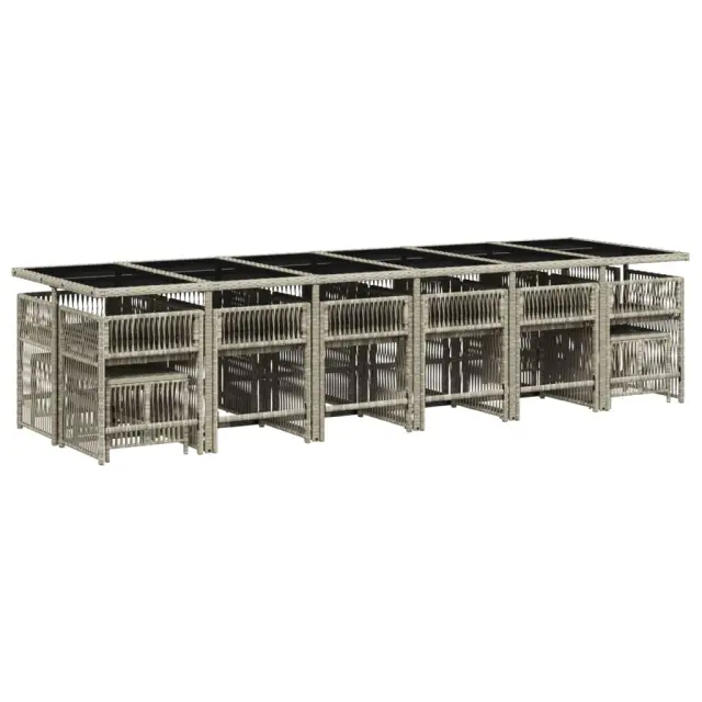 vidaXL Vrtna jedilna garnitura 17-delna z blazinami siv poli ratan
