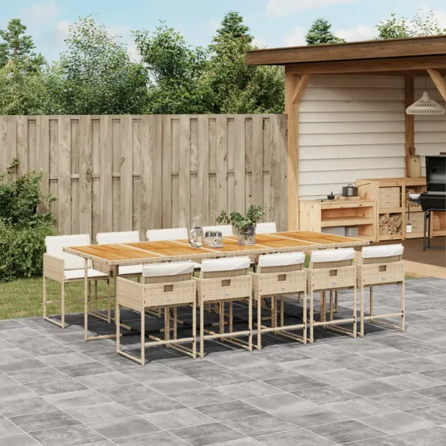 vidaXL Vrtna jedilna garnitura 11-delna z blazinami bež poli ratan