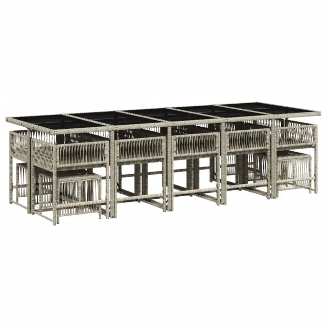 vidaXL Vrtna jedilna garnitura 15-delna z blazinami sv. siv poli ratan