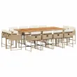 vidaXL Vrtna jedilna garnitura 13-delna z blazinami bež poli ratan