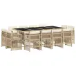 vidaXL Vrtna jedilna garnitura 13-delna z blazinami bež poli ratan