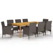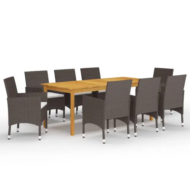 vidaXL Vrtna jedilna garnitura 9-delna z blazinami rjav