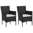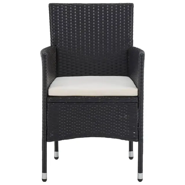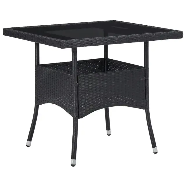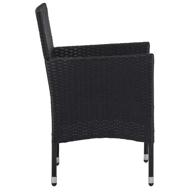 vidaXL Vrtna jedilna garnitura 3-delna poli ratan in steklo črna