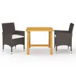 vidaXL Vrtna jedilna garnitura 3-delna z blazinami rjava