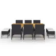 vidaXL Vrtna jedilna garnitura 11-delna črna