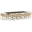 vidaXL Vrtna jedilna garnitura 15-delna z blazinami bež poli ratan