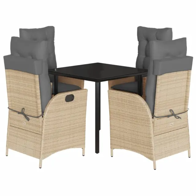 vidaXL Vrtna jedilna garnitura 5-delna z blazinami bež poli ratan