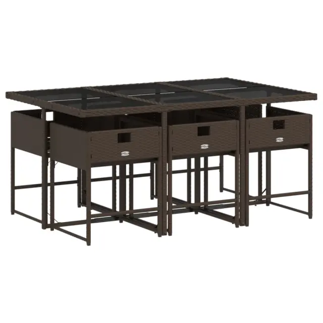 vidaXL Vrtna jedilna garnitura z blazinami 7-delna rjav poli ratan