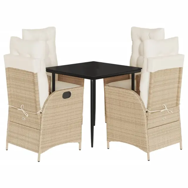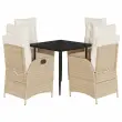 vidaXL Vrtna jedilna garnitura 5-delna z blazinami bež poli ratan