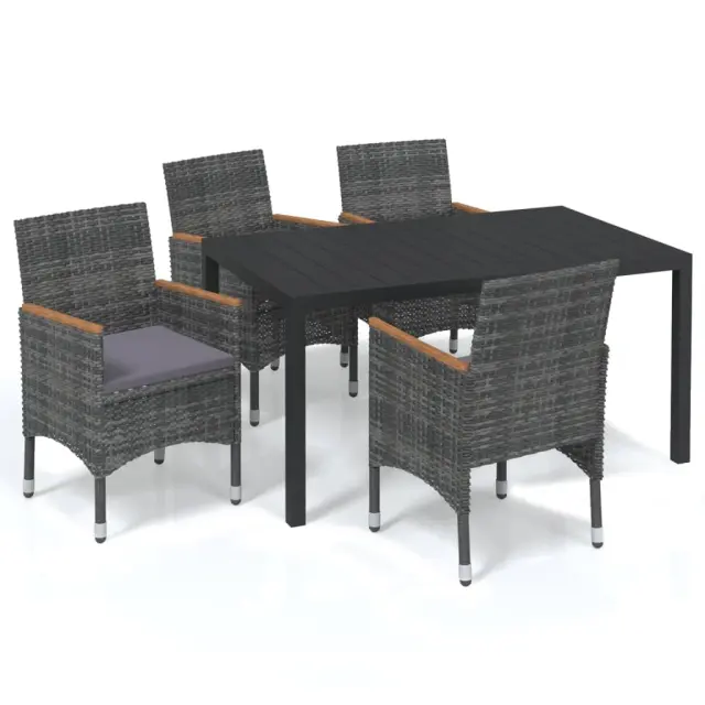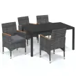vidaXL Vrtna jedilna garnitura 5-delna z blazinami poli ratan siva