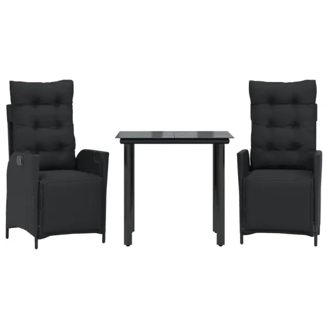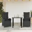 vidaXL Vrtna jedilna garnitura 3-delna z blazinami črn poli ratan