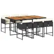 vidaXL Vrtna jedilna garnitura 7-delna z blazinami črna poli ratan