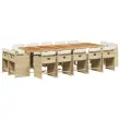 vidaXL Vrtna jedilna garnitura 15-delna z blazinami bež poli ratan