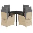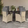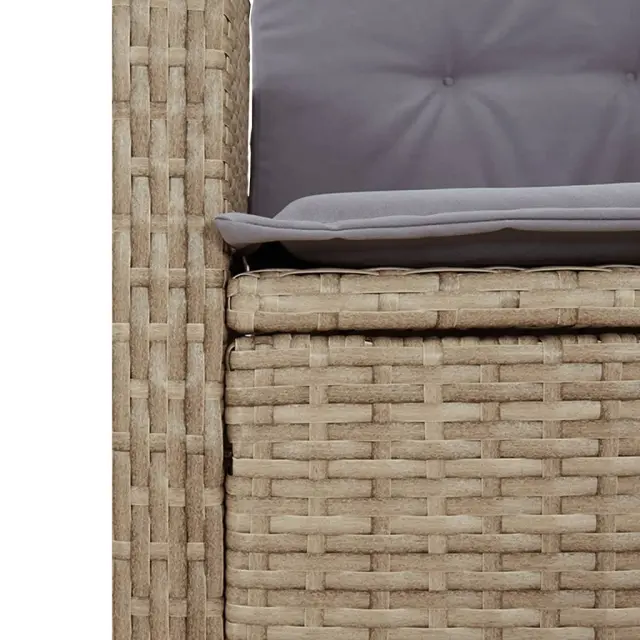 Ta vrtna jedilna garnitura je odlična izbira za večerjo na prostem ali za sprostitev na vrtu, dvorišču ali terasi. Vzdržljiv material: PE ratan, znan tudi kot poli ratan, je močan sintetični material, ki zahteva malo vzdrževanja in je videti kot naravni ratan. Je lahek, enostaven za čiščenje in se zaradi svoje vzdržljivosti in odpornosti na vremenske vplive pogosto uporablja za zunanje pohištvo.Nastavljivo naslonjalo: Ta vrtni sedež ima ročaj. S potegom ročaja lahko naslonjalo nastavite v poljuben položaj in ga hitro vrnete v prvotni položaj.Udobno sedenje: To zunanje pohištvo z debelo oblazinjenimi blazinami zagotavlja udobno sedenje.Prevleko je mogoče odstraniti in oprati: Te sedežne blazine imajo odstranljive prevleke za lažje pranje in vzdrževanje. Hrbtne blazine imajo na zadnji strani zavihek za enostavno pritrditev na naslonjala.Steklena mizna plošča: Površina zunanje mize je izdelana iz močnega in trpežnega kaljenega stekla, kar omogoča enostavno čiščenje z vlažno krpo in vašemu zunanjemu prostoru doda pridih elegance. Dobro je vedeti: Če želite, da vaše zunanje pohištvo ostane lepo, vam priporočamo, da ga zaščitite z vodoodporno prevleko.Maksimalna nosilnost (na sedež): 110 kgUV-odpornoPotrebno sestavljanje: DaMiza:Barva: ČrnaMaterial: Jeklo s prašnim premazom, kaljeno stekloDimenzije mize: 80 x 80 x 74 cm (D x Š x V)Vrtni naslanjač:Barva: BežMaterial: PE ratan, jeklen okvir s prašnim premazomDimenzije v sedečem položaju: 57 x 61 x 93 cm (Š x G x V)Dimenzije v ležečem položaju: 57 x 86 x 83 cm (Š x G x V)Velikost sedeža: 47 x 50 cm (Š x G)Višina sedeža od tal: 44 cmVišina naslonjala za roke, merjena od tal: 64 cmNastavljiv vrtni stol z oporo za noge:Barva: BežMaterial: PE ratan, jeklen okvir s prašnim premazomDimenzije v sedečem položaju: 57 x 61 x 93 cm (Š x G x V)Dimenzije v ležečem položaju: 57 x 115 x 83 cm (Š x G x V)Velikost sedeža: 47 x 50 cm (Š x G)Višina sedeža od tal: 44 cmVišina naslonjala za roke, merjena od tal: 64 cmBlazina:Barva: Svetlo sivaMaterial prevleke: Tkanina (100 % poliester)Polnilo sedežne blazine: PenaPolnilo hrbtne blazine: bombažna vlaknaDimenzije sedežne blazine (majhna): 48 x 51 x 3 cm (Š x G x D)Dimenzije sedežne blazine (velika): 48 x 89 x 3 cm (Š x G x D)Dimenzije hrbtne blazine: 66 x 48 x 11 cm (D x Š x D)Paket vsebuje:1 x Vrtna miza2 x Vrtni stol s funkcijo nagiba2 x Nastavljiv vrtni stol z oporo za noge4 x Blazina za hrbet4 x Sedežna blazina s snemljivo in pralno prevleko 3213266