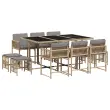 vidaXL Vrtna jedilna garnitura 11-delna z blazinami bež poli ratan
