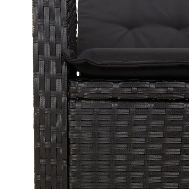 Ta vrtna jedilna garnitura je odlična izbira za večerjo na prostem ali za sprostitev na vrtu, dvorišču ali terasi. Vzdržljiv material: PE ratan, znan tudi kot poli ratan, je močan sintetični material, ki zahteva malo vzdrževanja in je videti kot naravni ratan. Je lahek, enostaven za čiščenje in se zaradi svoje vzdržljivosti in odpornosti na vremenske vplive pogosto uporablja za zunanje pohištvo.Nastavljivo naslonjalo: Ta vrtni sedež ima ročaj. S potegom ročaja lahko naslonjalo nastavite v poljuben položaj in ga hitro vrnete v prvotni položaj.Udobno sedenje: To zunanje pohištvo z debelo oblazinjenimi blazinami zagotavlja udobno sedenje.Prevleko je mogoče odstraniti in oprati: Te sedežne blazine imajo odstranljive prevleke za lažje pranje in vzdrževanje. Hrbtne blazine imajo na zadnji strani zavihek za enostavno pritrditev na naslonjala.Steklena mizna plošča: Površina zunanje mize je izdelana iz močnega in trpežnega kaljenega stekla, kar omogoča enostavno čiščenje z vlažno krpo in vašemu zunanjemu prostoru doda pridih elegance. Dobro je vedeti: Če želite, da vaše zunanje pohištvo ostane lepo, vam priporočamo, da ga zaščitite z vodoodporno prevleko.Maksimalna nosilnost (na sedež): 110 kgUV-odpornoPotrebno sestavljanje: DaMiza:Barva: ČrnaMaterial: Jeklo s prašnim premazom, kaljeno stekloDimenzije mize: 80 x 80 x 74 cm (D x Š x V)Vrtni naslanjač:Barva: ČrnaMaterial: PE ratan, jeklen okvir s prašnim premazomDimenzije v sedečem položaju: 57 x 61 x 93 cm (Š x G x V)Dimenzije v ležečem položaju: 57 x 86 x 83 cm (Š x G x V)Velikost sedeža: 47 x 50 cm (Š x G)Višina sedeža od tal: 44 cmVišina naslonjala za roke, merjena od tal: 64 cmBlazina:Barva: ČrnaMaterial prevleke: Tkanina (100 % poliester)Polnilo sedežne blazine: PenaPolnilo hrbtne blazine: bombažna vlaknaDimenzije sedežne blazine: 48 x 51 x 3 cm (Š x G x D)Dimenzije hrbtne blazine: 66 x 48 x 11 cm (D x Š x D)Paket vsebuje:1 x Vrtna miza2 x Vrtni stol s funkcijo nagiba2 x Blazina za hrbet2 x Sedežna blazina s snemljivo pralno prevleko 3213174
