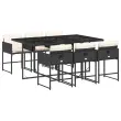 vidaXL Vrtna jedilna garnitura 7-delna z blazinami črna poli ratan
