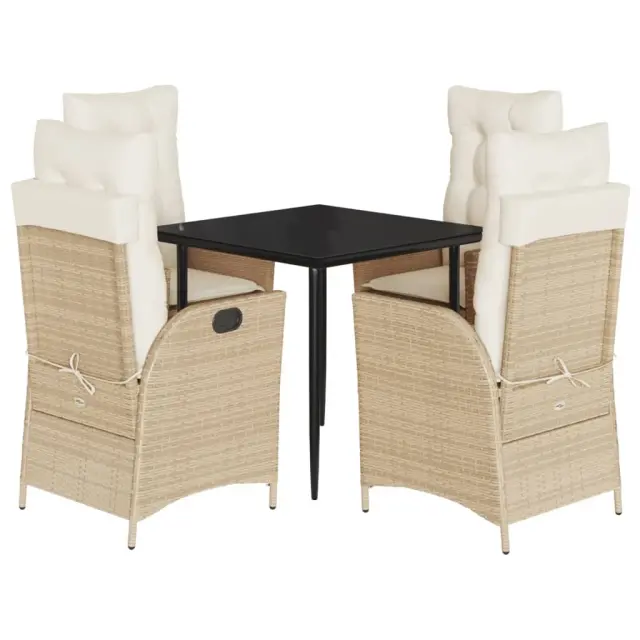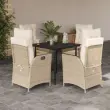 vidaXL Vrtna jedilna garnitura 5-delna z blazinami bež poli ratan