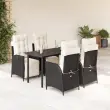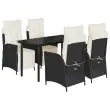 Ta vrtna jedilna garnitura je odlična izbira za večerjo na prostem ali za sprostitev na vrtu, dvorišču ali terasi. Vzdržljiv material: PE ratan, znan tudi kot poli ratan, je močan sintetični material, ki zahteva malo vzdrževanja in je videti kot naravni ratan. Je lahek, enostaven za čiščenje in se zaradi svoje vzdržljivosti in odpornosti na vremenske vplive pogosto uporablja za zunanje pohištvo.Nastavljivo naslonjalo za hrbet in podnožje: Ta vrtni sedež ima ročaj. Naslonjalo za hrbet in naslonjalo za noge lahko s potegom ročaja nastavite v poljuben položaj in ju hitro vrnete v prvotni položaj.Udobno sedenje: To zunanje pohištvo z debelo oblazinjenimi blazinami zagotavlja udobno sedenje.Prevleko je mogoče odstraniti in oprati: Te sedežne blazine imajo odstranljive prevleke za lažje pranje in vzdrževanje. Hrbtne blazine imajo na zadnji strani zavihek za enostavno pritrditev na naslonjala.Steklena mizna plošča: Površina zunanje mize je izdelana iz močnega in trpežnega kaljenega stekla, kar omogoča enostavno čiščenje z vlažno krpo in vašemu zunanjemu prostoru doda pridih elegance. Dobro je vedeti:Če želite, da vaše zunanje pohištvo ostane lepo, vam priporočamo, da ga zaščitite z vodoodporno prevleko.Maksimalna nosilnost (na sedež): 110 kgUV-odpornoPotrebno sestavljanje: DaMiza:Barva: ČrnaMaterial: Jeklo s prašnim premazom, kaljeno stekloDimenzije: 140 x 70 x 74 cm (D x Š x V)Vrtni naslanjač:Barva: ČrnaMaterial: PE ratan, jeklen okvir s prašnim premazomDimenzije v sedečem položaju: 57 x 61 x 93 cm (Š x G x V)Dimenzije v ležečem položaju: 57 x 115 x 83 cm (Š x G x V)Velikost sedeža: 47 x 50 cm (Š x G)Višina sedeža od tal: 44 cmVišina naslonjala za roke, merjena od tal: 64 cmBlazina:Barva: Kremno belaMaterial prevleke: Tkanina (100 % poliester)Polnilo sedežne blazine: PenaPolnilo hrbtne blazine: bombažna vlaknaDimenzije sedežne blazine: 48 x 89 x 3 cm (Š x G x D)Dimenzije hrbtne blazine: 66 x 48 x 11 cm (D x Š x D)Paket vsebuje:1 x Vrtna miza4 x Vrtni stol s funkcijo nagiba4 x Blazina za hrbet4 x Sedežna blazina s snemljivo in pralno prevleko 3213387