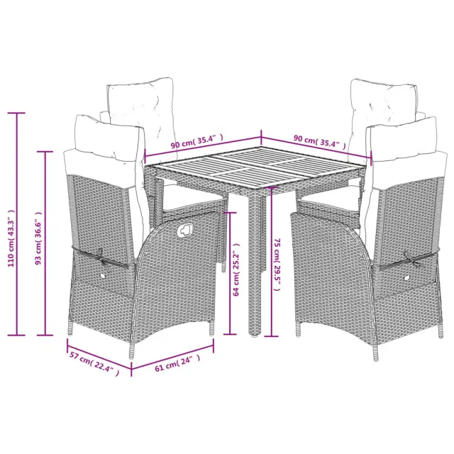 vidaXL Vrtna jedilna garnitura 5-delna z blazinami črn poli ratan