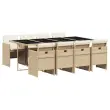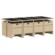 Ta vrtna jedilna garnitura je odlična izbira za večerjo na prostem ali za sprostitev na vrtu, dvorišču ali terasi. Vzdržljiv material: PE ratan, znan tudi kot poli ratan, je močan sintetični material, ki zahteva malo vzdrževanja in je videti kot naravni ratan. Je lahek, enostaven za čiščenje in se zaradi svoje vzdržljivosti in odpornosti na vremenske vplive pogosto uporablja za zunanje pohištvo.Kompaktno shranjevanje: Te stole je mogoče zložiti, zato jih je enostavno shraniti pod mizo. Ko so zloženi, se lepo prilegajo pod mizo in tvorijo prostorsko varčno kocko. Udobno sedenje: To zunanje pohištvo z debelo oblazinjenimi blazinami zagotavlja udobno sedenje.Prevleko je mogoče odstraniti in oprati: Te sedežne blazine imajo odstranljive prevleke za lažje pranje in vzdrževanje.Steklena mizna plošča: Površina zunanje mize je izdelana iz močnega in trpežnega kaljenega stekla, kar omogoča enostavno čiščenje z vlažno krpo in vašemu zunanjemu prostoru doda pridih elegance. Dobro je vedeti: Če želite, da vaše zunanje pohištvo ostane lepo, vam priporočamo, da ga zaščitite z vodoodporno prevleko.Maksimalna nosilnost (na sedež): 110 kg UV-odporno Potrebno sestavljanje: Da Miza: Barva: BežMaterial: PE ratan, jeklo s prašnim premazom, kaljeno stekloDimenzije: 220 x 106 x 73 cm (D x Š x V)Stol: Barva: BežMaterial: PE ratan, jeklen okvir s prašnim premazom Dimenzije: 50,5 x 54 x 79 cm (Š x G x V) Velikost sedišča: 45,5 x 38 cm (Š x G) Višina sedišča, merjena od tal: 43 cm Višina naslonjal za roke, merjena od tal: 63,5 cmBlazina: Barva: Kremno bela Material prevleke: Tkanina (100 % poliester) Material polnila: Pena Dimenzije blazine za stol: 76 x 46 x 2 cm (D x Š x D) Paket vsebuje:1 x Vrtna miza 8 x Vrtni stol 8 x Blazina za stol z visokim naslonom s snemljivo in pralno prevleko 3277689