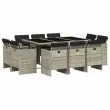 Ta vrtna jedilna garnitura je odlična izbira za večerjo na prostem ali za sprostitev na vrtu, dvorišču ali terasi. Vzdržljiv material: PE ratan, znan tudi kot poli ratan, je močan sintetični material, ki zahteva malo vzdrževanja in je videti kot naravni ratan. Je lahek, enostaven za čiščenje in se zaradi svoje vzdržljivosti in odpornosti na vremenske vplive pogosto uporablja za zunanje pohištvo.Kompaktno shranjevanje: Te stole je mogoče zložiti, zato jih je enostavno shraniti pod mizo. Ko so zloženi, se lepo prilegajo pod mizo in tvorijo prostorsko varčno kocko. Udobno sedenje: To zunanje pohištvo z debelo oblazinjenimi blazinami zagotavlja udobno sedenje.Prevleko je mogoče odstraniti in oprati: Te sedežne blazine imajo odstranljive prevleke za lažje pranje in vzdrževanje.Steklena mizna plošča: Površina zunanje mize je izdelana iz močnega in trpežnega kaljenega stekla, kar omogoča enostavno čiščenje z vlažno krpo in vašemu zunanjemu prostoru doda pridih elegance. Dobro je vedeti: Če želite, da vaše zunanje pohištvo ostane lepo, vam priporočamo, da ga zaščitite z vodoodporno prevleko.Maksimalna nosilnost (na sedež): 110 kg UV-odporno Potrebno sestavljanje: Da Miza: Barva: Svetlo siva in črnaMaterial: PE ratan, jeklo s prašnim premazom, kaljeno stekloDimenzije: 165 x 106 x 73 cm (D x Š x V) Stol: Barva: Svetlo sivaMaterial: PE ratan, jeklen okvir s prašnim premazom Dimenzije: 50,5 x 54 x 79 cm (Š x G x V) Velikost sedišča: 45,5 x 38 cm (Š x G) Višina sedišča, merjena od tal: 43 cm Višina naslonjal za roke, merjena od tal: 63,5 cmBlazina: Barva: Antracitna Material prevleke: Tkanina (100 % poliester) Material polnila: Pena Dimenzije blazine za stol: 76 x 46 x 2 cm (D x Š x D) Paket vsebuje:1 x Vrtna miza 10 x Vrtni stol10 x Blazina za stol z visokim naslonom s snemljivo in pralno prevleko 3277798