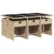 Ta vrtna jedilna garnitura je odlična izbira za večerjo na prostem ali za sprostitev na vrtu, dvorišču ali terasi. Vzdržljiv material: PE ratan, znan tudi kot poli ratan, je močan sintetični material, ki zahteva malo vzdrževanja in je videti kot naravni ratan. Je lahek, enostaven za čiščenje in se zaradi svoje vzdržljivosti in odpornosti na vremenske vplive pogosto uporablja za zunanje pohištvo.Kompaktno shranjevanje: Te stole je mogoče zložiti, zato jih je enostavno shraniti pod mizo. Ko so zloženi, se lepo prilegajo pod mizo in tvorijo prostorsko varčno kocko.Udobno sedenje: To zunanje pohištvo z debelo oblazinjenimi blazinami zagotavlja udobno sedenje.Prevleko je mogoče odstraniti in oprati: Te sedežne blazine imajo odstranljive prevleke za lažje pranje in vzdrževanje. Prevleke za blazine za stole imajo na zadnji strani zavihek za enostavno pritrditev na stole.Stabilna in enostavna za čiščenje namizna plošča: Ta vrtna miza ima mizno ploščo iz kaljenega stekla, ki je stabilna, vzdržljiva in jo je enostavno očistiti z vlažno krpo. Dobro je vedeti: Če želite, da vaše zunanje pohištvo ostane lepo, vam priporočamo, da ga zaščitite z vodoodporno prevleko.Maksimalna nosilnost (na sedež): 110 kg UV-odporno Potrebno sestavljanje: Da Miza: Barva mize: BežBarva stekla: ČrnaMaterial: PE ratan, jeklo s prašnim premazom, kaljeno stekloDimenzije: 165 x 106 x 73 cm (D x Š x V) Stol: Barva: Bež Material: PE ratan, jeklen okvir s prašnim premazom Dimenzije: 50,5 x 54 x 79 cm (Š x G x V) Velikost sedišča: 45,5 x 38 cm (Š x G) Višina sedišča, merjena od tal: 43 cm Višina naslonjal za roke, merjena od tal: 63,5 cm Blazina: Barva: Kremno bela Material prevleke: Tkanina (100 % poliester) Material polnila: Pena Dimenzije blazine za stol: 76 x 46 x 2 cm (D x Š x D) Paket vsebuje:1 x Vrtna miza 6 x Vrtni stol 6 x Blazina za stol z visokim naslonom s snemljivo in pralno prevleko 3277857