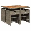 Ta vrtna jedilna garnitura je odlična izbira za večerjo na prostem ali za sprostitev na vrtu, dvorišču ali terasi. Vzdržljiv material: PE ratan, znan tudi kot poli ratan, je močan sintetični material, ki zahteva malo vzdrževanja in je videti kot naravni ratan. Je lahek, enostaven za čiščenje in se zaradi svoje vzdržljivosti in odpornosti na vremenske vplive pogosto uporablja za zunanje pohištvo.Kompaktno shranjevanje: Te stole je mogoče zložiti, zato jih je enostavno shraniti pod mizo. Ko so zloženi, se lepo prilegajo pod mizo in tvorijo prostorsko varčno kocko. Poleg tega je mogoče stolčke shraniti tudi pod stoli, kar še poveča učinkovitost prostora.Udobno sedenje: To zunanje pohištvo z debelo oblazinjenimi blazinami zagotavlja udobno sedenje.Prevleko je mogoče odstraniti in oprati: Te sedežne blazine imajo odstranljive prevleke za lažje pranje in vzdrževanje. Prevleke za blazine za stole imajo na zadnji strani zavihek za enostavno pritrditev na stole.Stabilna mizna plošča, ki je enostavna za čiščenje: Ta vrtna miza ima ploščo iz akacijevega lesa, ki je čvrsta, vzdržljiva in jo je enostavno čistiti z vlažno krpo. Dobro je vedeti: Če želite, da vaše zunanje pohištvo ostane lepo, vam priporočamo, da ga zaščitite z vodoodporno prevleko.Maksimalna nosilnost (na sedež): 110 kg UV-odporno Potrebno sestavljanje: Da Miza: Barva mize: Siva in rjavaMaterial: PE ratan, jeklo s prašnim premazom, trden akacijev lesDimenzije: 110 x 106 x 73 cm (D x Š x V) Stol: Barva: Siva Material: PE ratan, jeklen okvir s prašnim premazom Dimenzije: 50,5 x 50 x 79 cm (Š x G x V) Velikost sedišča: 45,5 x 38 cm (Š x G) Višina sedišča, merjena od tal: 43 cm Višina naslonjal za roke, merjena od tal: 63,5 cm Stolček: Barva: Siva Material: PE ratan, jeklen okvir s prašnim premazom Dimenzije: 41 x 41 x 36 cm (Š x G x V) Blazina: Barva: Temno siva Material prevleke: Tkanina (100 % poliester) Material polnila: Pena Dimenzije blazine za stol: 76 x 46 x 2 cm (D x Š x D)Dimenzije blazine za stolček: 40 x 40 x 2 cm (Š x G x D) Paket vsebuje:1 x Vrtna miza 4 x Vrtni stol 4 x Vrtni stolček 4 x Sedežna blazina za stolček s snemljivo in pralno prevleko 4 x Blazina za stol z visokim naslonom s snemljivo in pralno prevleko 3277909