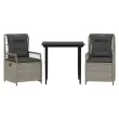 Ta vrtna jedilna garnitura je odlična izbira za večerjo na prostem ali za sprostitev na vrtu, dvorišču ali terasi. Vzdržljiv material: PE ratan, znan tudi kot poli ratan, je močan sintetični material, ki zahteva malo vzdrževanja in je videti kot naravni ratan. Je lahek, enostaven za čiščenje in se zaradi svoje vzdržljivosti in odpornosti na vremenske vplive pogosto uporablja za zunanje pohištvo.Nastavljivo naslonjalo: Ta vrtni sedež ima ročaj. S potegom ročaja lahko naslonjalo nastavite v poljuben položaj in ga hitro vrnete v prvotni položaj.Udobno sedenje: To zunanje pohištvo z debelo oblazinjenimi blazinami zagotavlja udobno sedenje.Prevleko je mogoče odstraniti in oprati: Sedežna blazina ima odstranljivo prevleko za enostavno pranje in vzdrževanje.Steklena mizna plošča: Površina zunanje mize je izdelana iz močnega in trpežnega kaljenega stekla, kar omogoča enostavno čiščenje z vlažno krpo in vašemu zunanjemu prostoru doda pridih elegance. Dobro je vedeti:Če želite, da vaše zunanje pohištvo ostane lepo, vam priporočamo, da ga zaščitite z vodoodporno prevleko.Maksimalna nosilnost (na sedež): 110 kgUV-odpornoPotrebno sestavljanje: DaMiza:Barva: ČrnaMaterial: Jeklo s prašnim premazom, kaljeno stekloDimenzije mize: 80 x 80 x 74 cm (D x Š x V)Vrtni naslanjač:Barva: Svetlo sivaMaterial: PE ratan, jeklen okvir s prašnim premazomDimenzije v sedečem položaju: 55 x 60 x 93 cm (Š x G x V)Dimenzije v ležečem položaju: 55 x 89 x 83 cm (Š x G x V)Velikost sedeža: 48 x 55 cm (Š x G)Višina sedeža, merjena od tal: 42 cmVišina naslonjala za roke, merjena od tal: 58 cmBlazina:Barva: Temno sivaMaterial prevleke: Tkanina (100 % poliester)Polnilo sedežne blazine: PenaPolnilo hrbtne blazine: bombažna vlaknaDimenzije sedežne blazine: 48 x 55 x 3 cm (Š x G x D)Dimenzije hrbtne blazine: 48 x 50 x 10 cm (D x Š x D)Paket vsebuje:1 x Vrtna miza2 x Vrtni stol s funkcijo nagiba2 x Blazina za hrbet2 x Sedežna blazina s snemljivo pralno prevleko 3263027