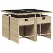 Ta vrtna jedilna garnitura je odlična izbira za večerjo na prostem ali za sprostitev na vrtu, dvorišču ali terasi. Vzdržljiv material: PE ratan, znan tudi kot poli ratan, je močan sintetični material, ki zahteva malo vzdrževanja in je videti kot naravni ratan. Je lahek, enostaven za čiščenje in se zaradi svoje vzdržljivosti in odpornosti na vremenske vplive pogosto uporablja za zunanje pohištvo.Kompaktno shranjevanje: Te stole je mogoče zložiti, zato jih je enostavno shraniti pod mizo. Ko so zloženi, se lepo prilegajo pod mizo in tvorijo prostorsko varčno kocko.Udobno sedenje: To zunanje pohištvo z debelo oblazinjenimi blazinami zagotavlja udobno sedenje.Prevleko je mogoče odstraniti in oprati: Te sedežne blazine imajo odstranljive prevleke za lažje pranje in vzdrževanje. Prevleke za blazine za stole imajo na zadnji strani zavihek za enostavno pritrditev na stole.Stabilna in enostavna za čiščenje namizna plošča: Ta vrtna miza ima mizno ploščo iz kaljenega stekla, ki je stabilna, vzdržljiva in jo je enostavno očistiti z vlažno krpo. Dobro je vedeti: Če želite, da vaše zunanje pohištvo ostane lepo, vam priporočamo, da ga zaščitite z vodoodporno prevleko.Maksimalna nosilnost (na sedež): 110 kg UV-odporno Potrebno sestavljanje: Da Miza: Barva mize: Mešano bežBarva stekla: ČrnaMaterial: PE ratan, jeklo s prašnim premazom, kaljeno stekloDimenzije: 110 x 106 x 73 cm (D x Š x V) Stol: Barva: Mešano bež Material: PE ratan, jeklen okvir s prašnim premazom Dimenzije: 50,5 x 54 x 79 cm (Š x G x V) Velikost sedišča: 45,5 x 38 cm (Š x G) Višina sedišča, merjena od tal: 43 cm Višina naslonjal za roke, merjena od tal: 63,5 cm Blazina: Barva: Svetlo siva Material prevleke: Tkanina (100 % poliester) Material polnila: Pena Dimenzije blazine za stol: 76 x 46 x 2 cm (D x Š x D) Paket vsebuje:1 x Vrtna miza 4 x Vrtni stol 4 x Blazina za stol z visokim naslonom s snemljivo in pralno prevleko 3277847