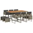 Ta vrtna jedilna garnitura je odlična izbira za večerjo na prostem ali za sprostitev na vrtu, dvorišču ali terasi. Vzdržljiv material: PE ratan, znan tudi kot poli ratan, je močan sintetični material, ki zahteva malo vzdrževanja in je videti kot naravni ratan. Je lahek, enostaven za čiščenje in se zaradi svoje vzdržljivosti in odpornosti na vremenske vplive pogosto uporablja za zunanje pohištvo.Kompaktno shranjevanje: Te stole je mogoče zložiti, zato jih je enostavno shraniti pod mizo. Ko so zloženi, se lepo prilegajo pod mizo in tvorijo prostorsko varčno kocko. Poleg tega je mogoče stolčke shraniti tudi pod stole, kar še poveča prostorsko učinkovitost.Udobno sedenje: To zunanje pohištvo z debelo oblazinjenimi blazinami zagotavlja udobno sedenje.Prevleko je mogoče odstraniti in oprati: Te sedežne blazine imajo odstranljive prevleke za lažje pranje in vzdrževanje. Prevleke za blazine imajo na zadnji strani zavihek za enostavno pritrditev na naslonjala.Stabilna mizna plošča, ki je enostavna za čiščenje: Ta vrtna miza ima ploščo iz akacijevega lesa, ki je čvrsta, vzdržljiva in jo je enostavno čistiti z vlažno krpo. Dobro je vedeti: Če želite, da vaše zunanje pohištvo ostane lepo, vam priporočamo, da ga zaščitite z vodoodporno prevleko.Maksimalna nosilnost (na sedež): 110 kg UV-odporno Potrebno sestavljanje: Da Miza: Barva mize: Siva in rjavaMaterial: PE ratan, jeklo s prašnim premazom, trden akacijev lesDimenzije: 165 x 106 x 73 cm (D x Š x V) Stol: Barva: Siva Material: PE ratan, jeklen okvir s prašnim premazom Dimenzije: 50,5 x 50 x 79 cm (Š x G x V) Velikost sedišča: 45,5 x 38 cm (Š x G) Višina sedišča, merjena od tal: 43 cm Višina naslonjal za roke, merjena od tal: 63,5 cm Stolček: Barva: Siva Material: PE ratan, jeklen okvir s prašnim premazom Dimenzije: 41 x 41 x 36 cm (Š x G x V) Blazina: Barva: Temno siva Material prevleke: Tkanina (100 % poliester) Material polnila: Pena Dimenzije blazine za stol: 76 x 46 x 2 cm (D x Š x D)Dimenzije blazine za stolček: 40 x 40 x 2 cm (Š x G x D) Paket vsebuje:1 x Vrtna miza 6 x Vrtni stol 4 x Vrtni stolček 4 x Sedežna blazina za stolček s snemljivo in pralno prevleko 6 x Blazina za stol z visokim naslonom s snemljivo in pralno prevleko 3278101