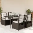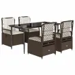 Ta vrtna jedilna garnitura je odlična izbira za večerjo na prostem ali za sprostitev na vrtu, dvorišču ali terasi. Vzdržljiv material: PE ratan, znan tudi kot poli ratan, je močan sintetični material, ki zahteva malo vzdrževanja in je videti kot naravni ratan. Je lahek, enostaven za čiščenje in se zaradi svoje vzdržljivosti in odpornosti na vremenske vplive pogosto uporablja za zunanje pohištvo.Nastavljivo naslonjalo: Ta vrtni sedež ima ročaj. S potegom ročaja lahko naslonjalo nastavite v poljuben položaj in ga hitro vrnete v prvotni položaj.Udobno sedenje: To zunanje pohištvo z debelo oblazinjenimi blazinami zagotavlja udobno sedenje.Prevleko je mogoče odstraniti in oprati: Sedežna blazina ima odstranljivo prevleko za enostavno pranje in vzdrževanje.Steklena mizna plošča: Površina zunanje mize je izdelana iz močnega in trpežnega kaljenega stekla, kar omogoča enostavno čiščenje z vlažno krpo in vašemu zunanjemu prostoru doda pridih elegance. Dobro je vedeti:Če želite, da vaše zunanje pohištvo ostane lepo, vam priporočamo, da ga zaščitite z vodoodporno prevleko.Maksimalna nosilnost (na sedež): 110 kgUV-odpornoPotrebno sestavljanje: DaMiza:Barva: ČrnaMaterial: Jeklo s prašnim premazom, kaljeno stekloDimenzije mize: 160 x 80 x 74 cm (D x Š x V)Vrtni naslanjač:Barva: RjavaMaterial: PE ratan, jeklen okvir s prašnim premazomDimenzije v sedečem položaju: 55 x 60 x 93 cm (Š x G x V)Dimenzije v ležečem položaju: 55 x 89 x 83 cm (Š x G x V)Velikost sedeža: 48 x 55 cm (Š x G)Višina sedeža, merjena od tal: 42 cmVišina naslonjala za roke, merjena od tal: 58 cmBlazina:Barva: Kremno belaMaterial prevleke: Tkanina (100 % poliester)Polnilo sedežne blazine: PenaPolnilo hrbtne blazine: bombažna vlaknaDimenzije sedežne blazine: 48 x 55 x 3 cm (Š x G x D)Dimenzije hrbtne blazine: 48 x 50 x 10 cm (D x Š x D)Paket vsebuje:1 x Vrtna miza4 x Vrtni stol s funkcijo nagiba4 x Blazina za hrbet4 x Sedežna blazina s snemljivo in pralno prevleko 3262974