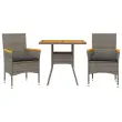 Ta vrtna jedilna garnitura je odlična izbira za večerjo na prostem ali za sprostitev na vrtu, dvorišču ali terasi. Vzdržljiv material: PE ratan, znan tudi kot poli ratan, je močan sintetični material, ki zahteva malo vzdrževanja in je videti kot naravni ratan. Je lahek, enostaven za čiščenje in se zaradi svoje vzdržljivosti in odpornosti na vremenske vplive pogosto uporablja za zunanje pohištvo.Udobno sedenje: Ta zunanja garnitura z debelo podloženimi blazinami zagotavlja udobno sedenje.Prevleko je mogoče odstraniti in oprati: Te sedežne blazine imajo odstranljive prevleke za lažje pranje in vzdrževanje.Stabilna mizna plošča, ki je enostavna za čiščenje: Ta vrtna miza ima ploščo iz akacijevega lesa, ki je čvrsta, vzdržljiva in jo je enostavno čistiti z vlažno krpo. Dobro je vedeti:Če želite, da vaše zunanje pohištvo ostane lepo, vam priporočamo, da ga zaščitite z vodoodporno prevleko.UV-odpornoPotrebno sestavljanje: DaMiza:Barva: SivaMaterial: PE ratan, prašno premazano jeklo, trden akacijev les z oljnim premazomDimenzije: 80 x 80 x 75 cm (Š x G x V)Stol:Barva: SivaMaterial: PE ratan, prašno premazano jeklo, trden akacijev les z oljnim premazomDimenzije: 53 x 61 x 83 cm (Š x G x V)Velikost sedeža: 44 x 47 cm (Š x G)Višina sedeža od tal (brez blazine): 42 cmVišina naslonjal za roke, merjena od tal: 60 cmMaksimalna nosilnost (na sedež): 110 kgSedežna blazina:Barva: Temno sivaMaterial prevleke: Tkanina (100 % poliester)Material polnila: PenaDimenzije: 44 x 46 x 2,5 cm (Š x G x D) Paket vsebuje:1 x Vrtna miza2 x Vrtni stol2 x Sedežna blazina s snemljivo pralno prevleko 3278699