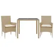 Ta vrtna jedilna garnitura je odlična izbira za večerjo na prostem ali za sprostitev na vrtu, dvorišču ali terasi. Vzdržljiv material: PE ratan, znan tudi kot poli ratan, je močan sintetični material, ki zahteva malo vzdrževanja in je videti kot naravni ratan. Je lahek, enostaven za čiščenje in se zaradi svoje vzdržljivosti in odpornosti na vremenske vplive pogosto uporablja za zunanje pohištvo.Udobno sedenje: Ta zunanja garnitura z debelo podloženimi blazinami zagotavlja udobno sedenje.Prevleko je mogoče odstraniti in oprati: Te sedežne blazine imajo odstranljive prevleke za lažje pranje in vzdrževanje.Steklena mizna plošča: Površina zunanje mize je izdelana iz močnega in trpežnega kaljenega stekla, kar omogoča enostavno čiščenje z vlažno krpo in vašemu zunanjemu prostoru doda pridih elegance. Dobro je vedeti:Če želite, da vaše zunanje pohištvo ostane lepo, vam priporočamo, da ga zaščitite z vodoodporno prevleko.UV-odpornoPotrebno sestavljanje: DaMiza:Barva: BežMaterial: PE ratan, jeklo s prašnim premazom, kaljeno stekloDimenzije: 90 x 90 x 75 cm (Š x G x V)Stol:Barva: BežMaterial: PE ratan, jeklen okvir s prašnim premazomDimenzije: 53 x 61 x 83 cm (Š x G x V)Velikost sedeža: 44 x 47 cm (Š x G)Višina sedeža od tal (brez blazine): 42 cmVišina naslonjal za roke, merjena od tal: 60 cmMaksimalna nosilnost (na sedež): 110 kgSedežna blazina:Barva: Kremno belaMaterial prevleke: Tkanina (100 % poliester)Material polnila: PenaDimenzije: 44 x 46 x 2,5 cm (Š x G x D) Paket vsebuje:1 x Vrtna miza2 x Vrtni stol2 x Sedežna blazina s snemljivo pralno prevleko 3278567